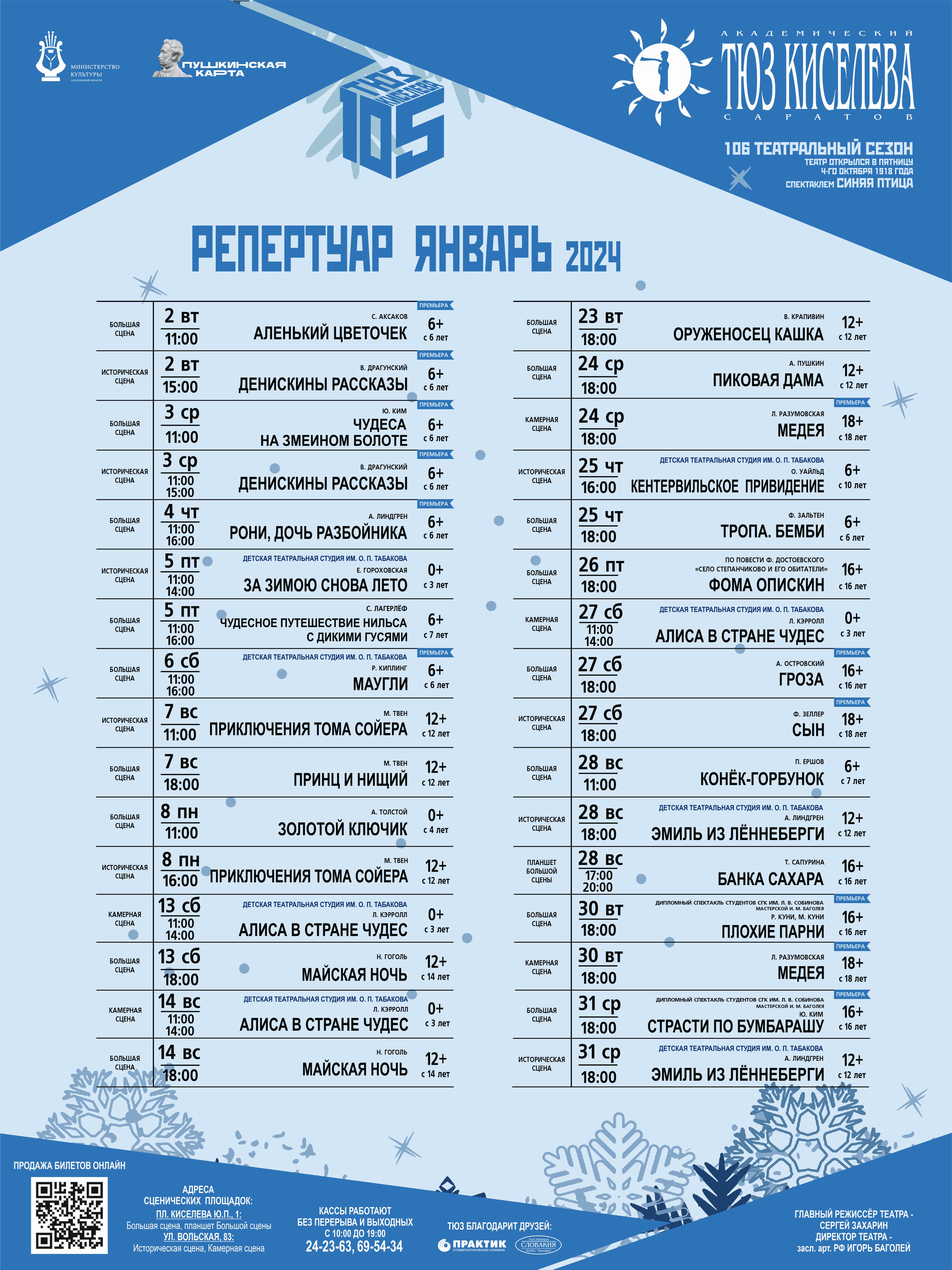 Репертуар Саратовского ТЮЗа на декабрь 2023 год