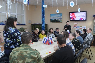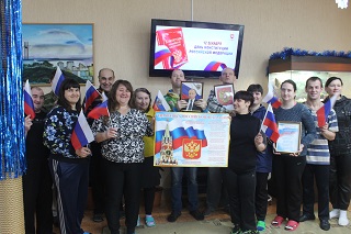 Для молодых инвалидов 3 корпуса дома-интерната прошел час правовой информации, направленной на формирование понимания сущности и значения Конституции и государственных символов Российской Федерации, воспитание чувства уважения, гордости, патриотизма, расширение кругозора и повышение общей культуры. Затем все приняли участие в правовой игре «Основной закон для всех», в ходе которой узнали об основных правах и обязанностях граждан РФ.