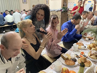 Молодые инвалиды, проживающие в 3 корпусе, в этот вечер также встретились за праздничными столами с вкусными домашними угощениями. Их ждала интересная праздничная программа со сказочными героями, Дедом Морозом и Снегурочкой. Все с удовольствием участвовали в веселых конкурсах, пели и танцевали.