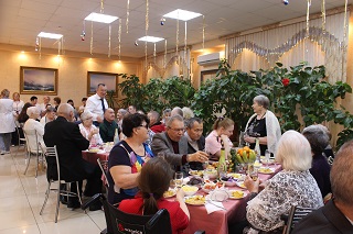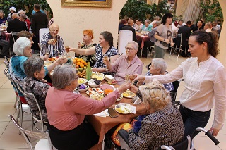 Для маломобильных граждан угощение и поздравления были организованны в отделениях и жилых комнатах.