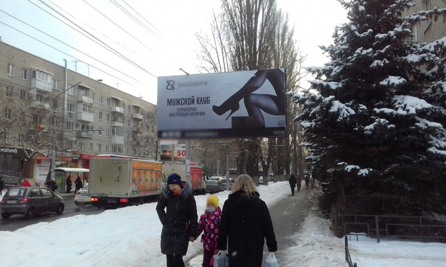В Заводском районе Саратова после возмущений общественности на рекламном баннере мужского клуба изменили только картинку, а пошлость так и осталась. Об этом рассказала «Четвертой Власти» местная жительница Маргарита Цой.