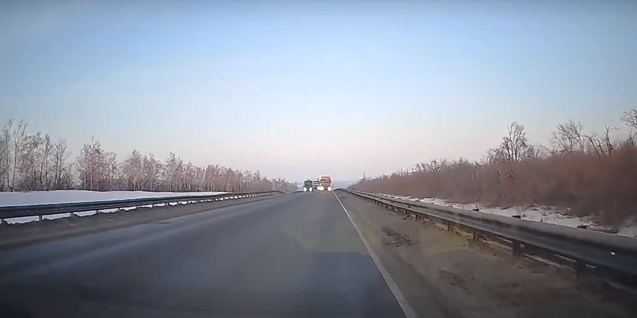 Серьезной аварии удалось избежать только благодаря тому, что водитель легковушки резко сбавил скорость и вырулил к обочине, а в этот момент тягач проскочил мимо.