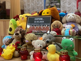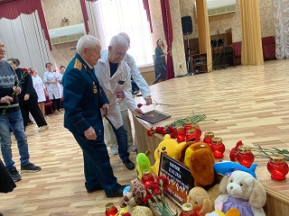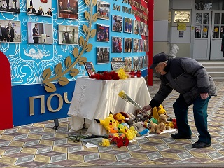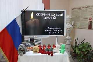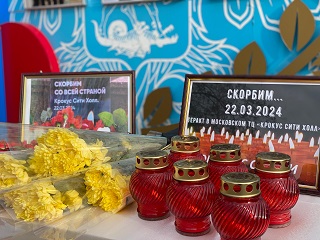 В 4х корпусах дома-интерната приспущены флаги, зажжены свечи памяти, люди несут цветы и мягкие игрушки. В едином порыве проживающие и сотрудники почтили погибших в теракте минутой молчания.