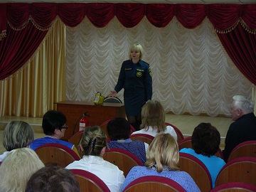 Валерия Витальевна еще раз напомнила персоналу дома-интерната о мерах пожарной безопасности при проведении новогодних праздников, о действиях сотрудников учреждения в случае возникновения пожара, о требованиях к эвакуационным путям и выходам при проведении культурно-массовых мероприятий, о назначении, устройстве и эксплуатации систем автоматической пожарной сигнализации.