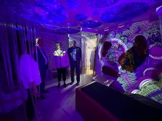 В главном корпусе делегация побывала в комнатах психологической разгрузки, оснащенных новейшим релаксационным оборудованием, Домовом Храме великомученика и Целителя Пантелеимона, актовом зале, медицинском блоке, в котором проходят профильные приемы врачей-специалистов, пищеблоке и столовой.