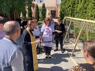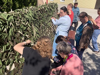 Сейчас проживающие и сотрудники осваивают технику плетения маскировочных сетей, которые не читаются дронами. Станок и материалы предоставлены Энгельсским отделением «Боевое братство». Под руководством инструкторов – волонтеров группы «Своих не бросаем» Нисы Расуловой и Елены Александровой сотрудники и проживающие с ментальными нарушениями здоровья уже изготовили свою первую сеть. К работе они приступили с благословения на благое дело от настоятеля домового храма Святой Ксении Петербургской Дмитрия Попеко.