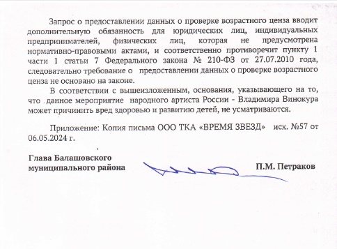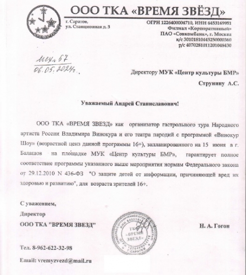Оформлен ли договор краткосрочной аренды с ООО «ТКА «Время звёзд» муниципальной собственности и договор аренды дорогостоящего сценического оборудования МУК? Возрастной ценз 12 на концерте в ТЮЗе В. Винокура. :: сайт «Лица Саратовской губернии» (lizagubernii.ru)