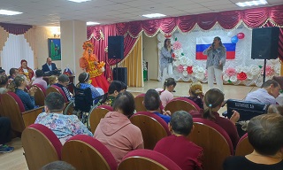 Для проживающих третьего корпуса учреждения прошел праздничный концерт с участием творческих коллективов ДК «Анисовский». Артисты порадовали зрителей любимыми песнями о России и танцами в национальных костюмах. А финальной точкой стал совместный флешмоб всех участников праздника «Вместе мы непобедимы».