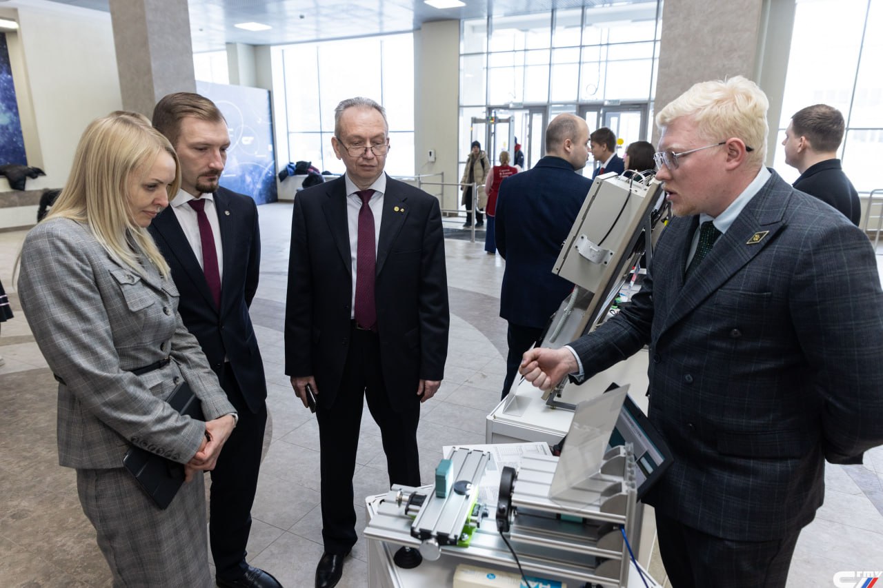 Гостям была представлена выставка разработок учёных, аспирантов и студентов Политеха. В их числе – робот-манипулятор с обратной оптической связью, программно-алгоритмическое обеспечение для калибровки систем стабилизации и управления движением летательными аппаратами, оборудование для прокладки инженерных коммуникаций методом направленной проходки и другие изобретения.