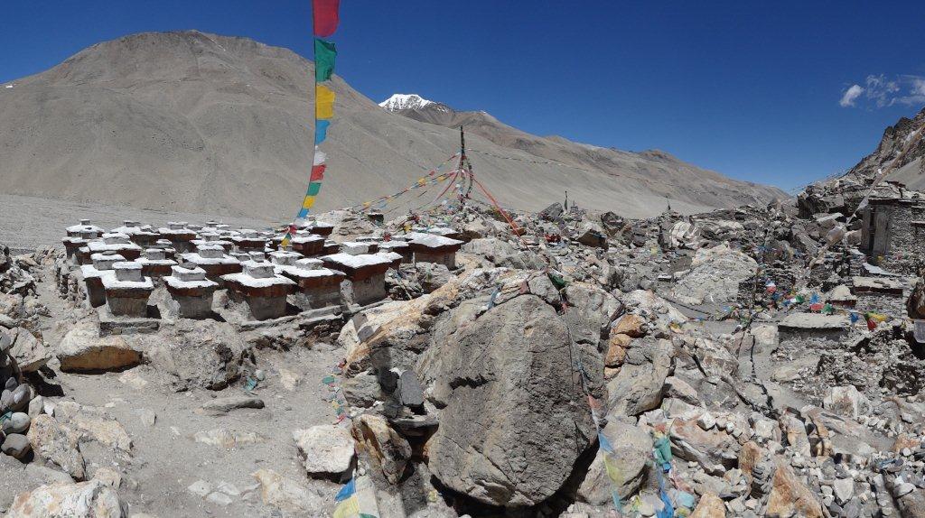 Но как говорится главное - участие. А уже после, стали приходить другие члены экспедиций с притензиями, что их не позвали. Главным тренером был наш представитель Юсупов Висан Алиевич. Да, что делать, придется проводить доптурнир после восхождения. А сегодня, спустившись на 7 км вниз по ущелью Ронгбук, посетили древний монастырь Ронгбук, на 5000м. Поражает, как несколько веков, люди, монахи жили в кельях, в пещерах. Как выживали,