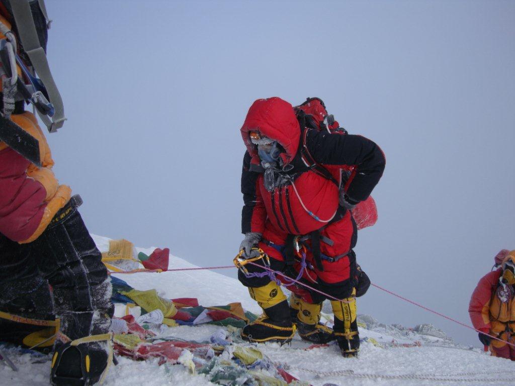 В середине подъёма Вся вершина Эвереста (8848м) устлана
