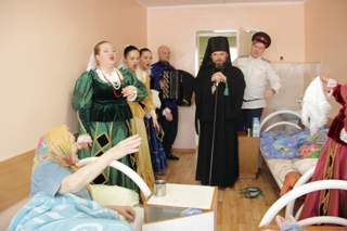 К поздравлению Владыки присоединился коллектив народного ансамбля песни и пляски «Хопёрская вольница», исполнивший народные песни и колядки.Жители с огромным удовольствием подпевали, некоторые из них даже немогли сдержать слёз радости. Проживающие всегда рады такому вниманию,ведь душевное тепло и радость бесценны.
