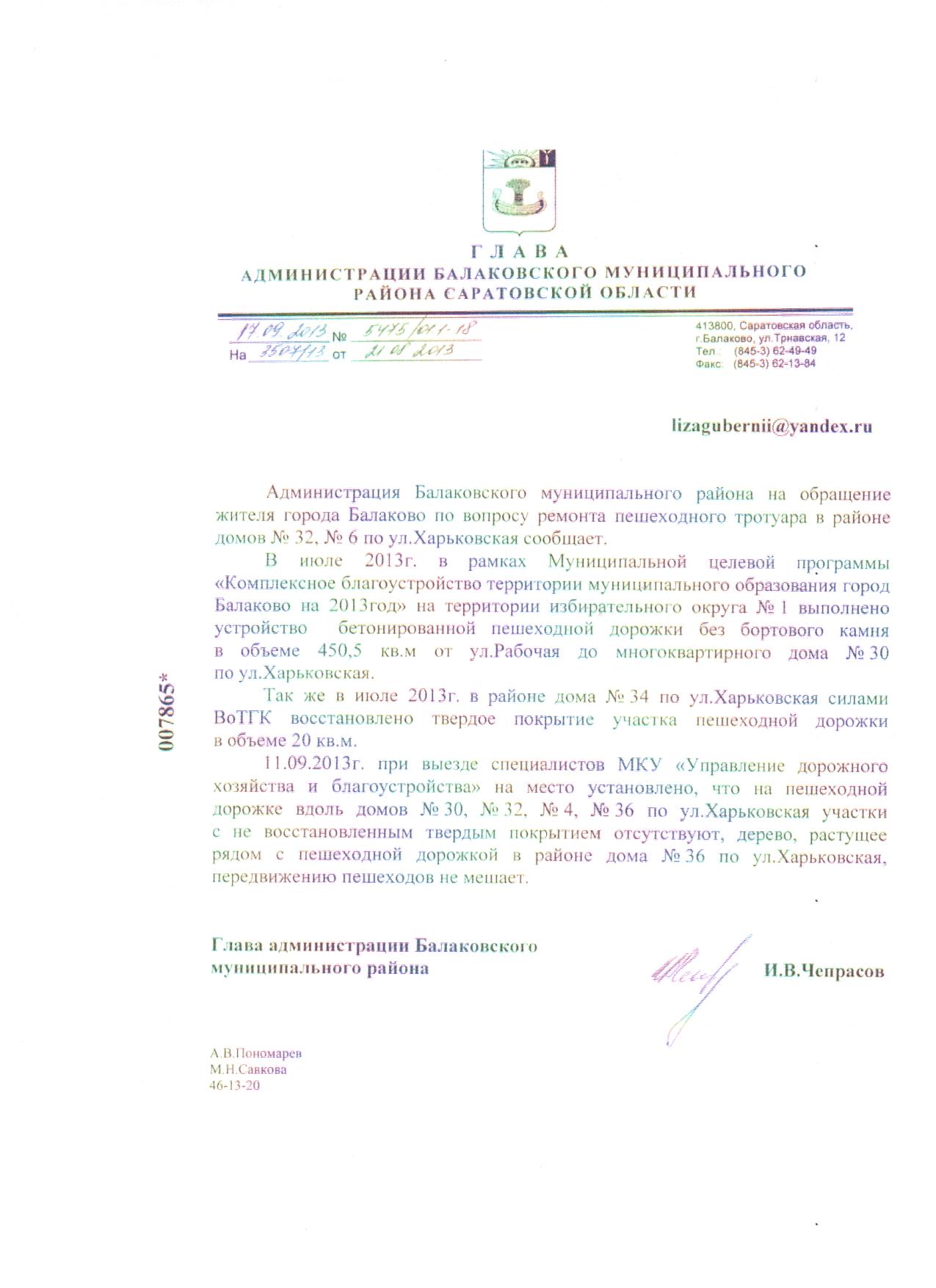 Уважаемый Иван Васильевич.Хочу довести до вашего сведения, что глава поселения Новополеводинского МО Волкова Л.И.на мое заявление от28.10.2010г о переносе трубы летнего полива, которая проходила около моего дома и постоянно текла, подтопляя и разрушая дом,мер не приняла. Затем мы самостоятельно решали эту проблему, что вызвало конфликт с соседями.Нас отключили от системы летнего полива, теперь мы не можем пользоваться огородом и насаждениями.Глава администрации устраняется от решения этой и подобных проблем, делая отписки и отговорки, не решая вопросы местного значения в соответствии со ст.14 Фз от 6.10.2003г. Убедительно просим Вас решить проблему и назначить разбирательство о соответствии занимаемой должности главы поселения Волковой Л.И