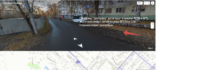 По этому "тротуару" дети идут в школы №38 и №5, родители ведут детей в сады №124 и №233, стариуи ходят за хлебом...
