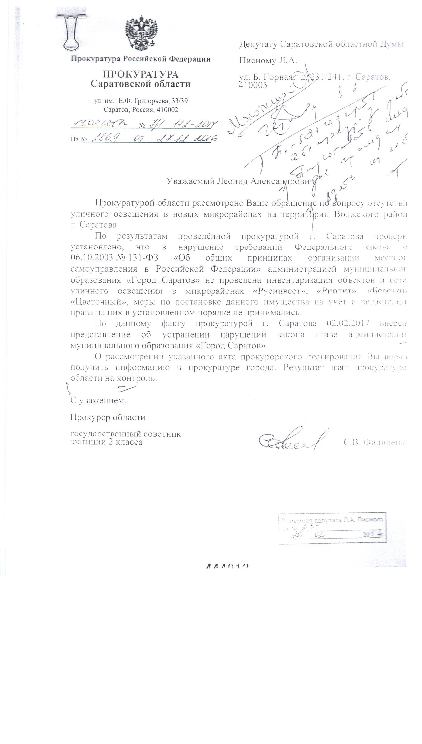 В ноябре 2016 года было повторное обращение в МУПП "Саратовводоканал",в Прокуратуру Ленинского района и в администрацию Ленинского района. Данная проблема до сих пор не решена.Очень надеемся на Вашу помощь.