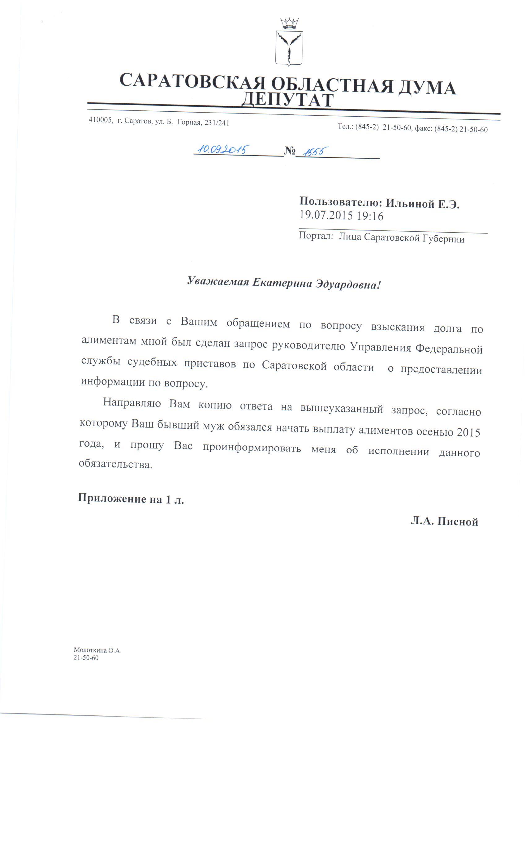 Уважаемая Екатерина Эдуардовна, проблема нечистоплотности бывших отцов, она, к сожалению, существует. Я перешлю ваше обращение не в Волжский РОСП, а в областную службу судебных приставов, приложу своё ходатайство и зная, в общем-то, положительные стороны работы руководителя областной службы Олега Ткаченко, особенно в данных вопросах, буду вместе с Вами надеяться, что та информация, которую Вы сообщили, в том числе, и о машинах, на которых катается Ваш бывший супруг, она поможет, под влиянием областного руководства, волжским приставам восстановить справедливость.