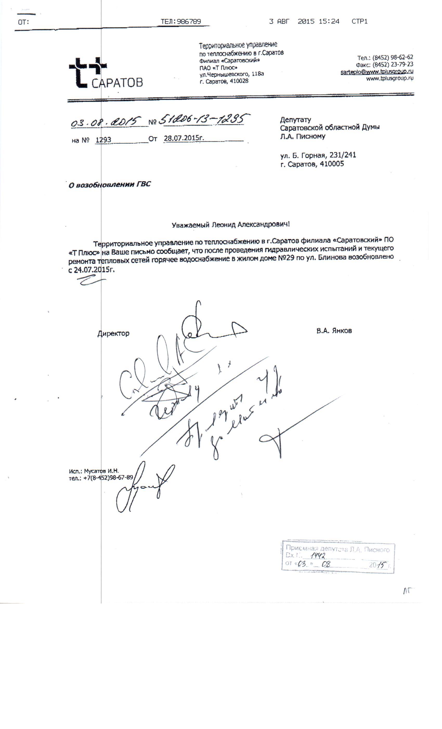 Уважаемая Лана, я выясню и разберусь, что случилось с горячей водой на Блинова, 29, и почему, тем более, нет её месяц. Вам на будущее — обращайтесь более оперативно. Если больше трёх дней нет воды, лучше лишний раз послать мне вопросы, я обязательно подключусь к решению ситуации, чем ждать месяц и не пользоваться ГВС.