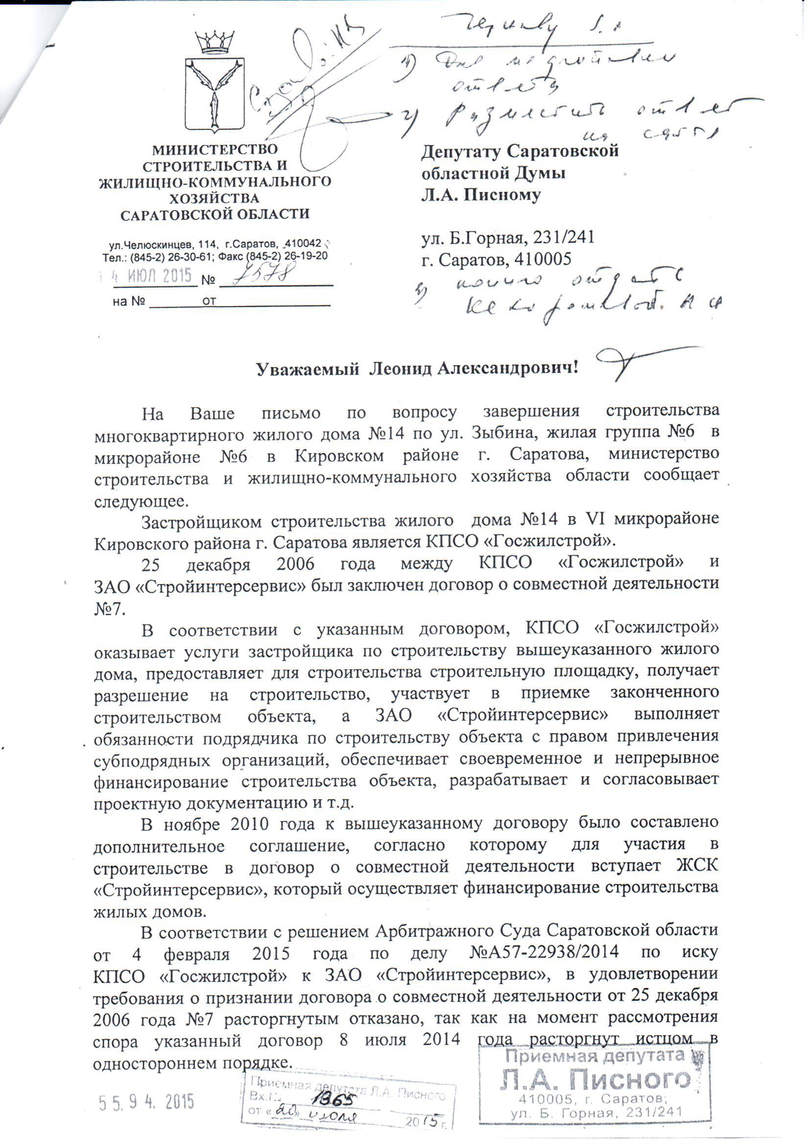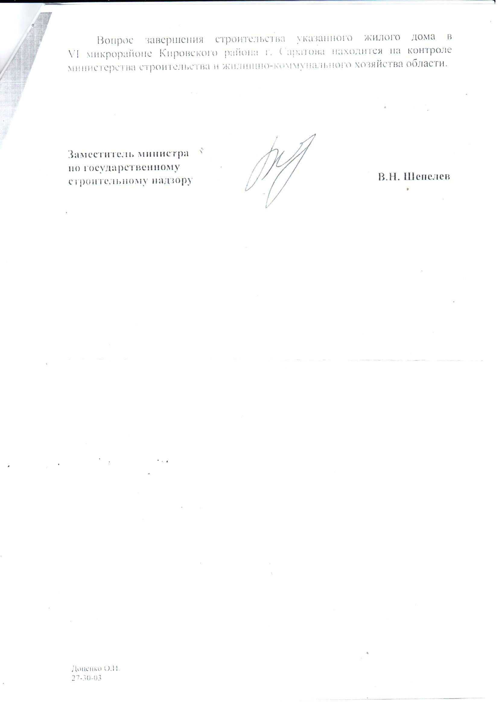 Уважаемый пользователь ЖСК «Смычка», пожалуйста, ознакомьтесь с теми ответами, которые я получил из контролирующих служб администрации Саратова, и давайте обязательно ещё раз попробуем увидеться с «Экватором» на приёме, после того, как Вы будете ознакомлены с полученными ответами, для того чтобы мы могли говорить с Вами на одном языке.
