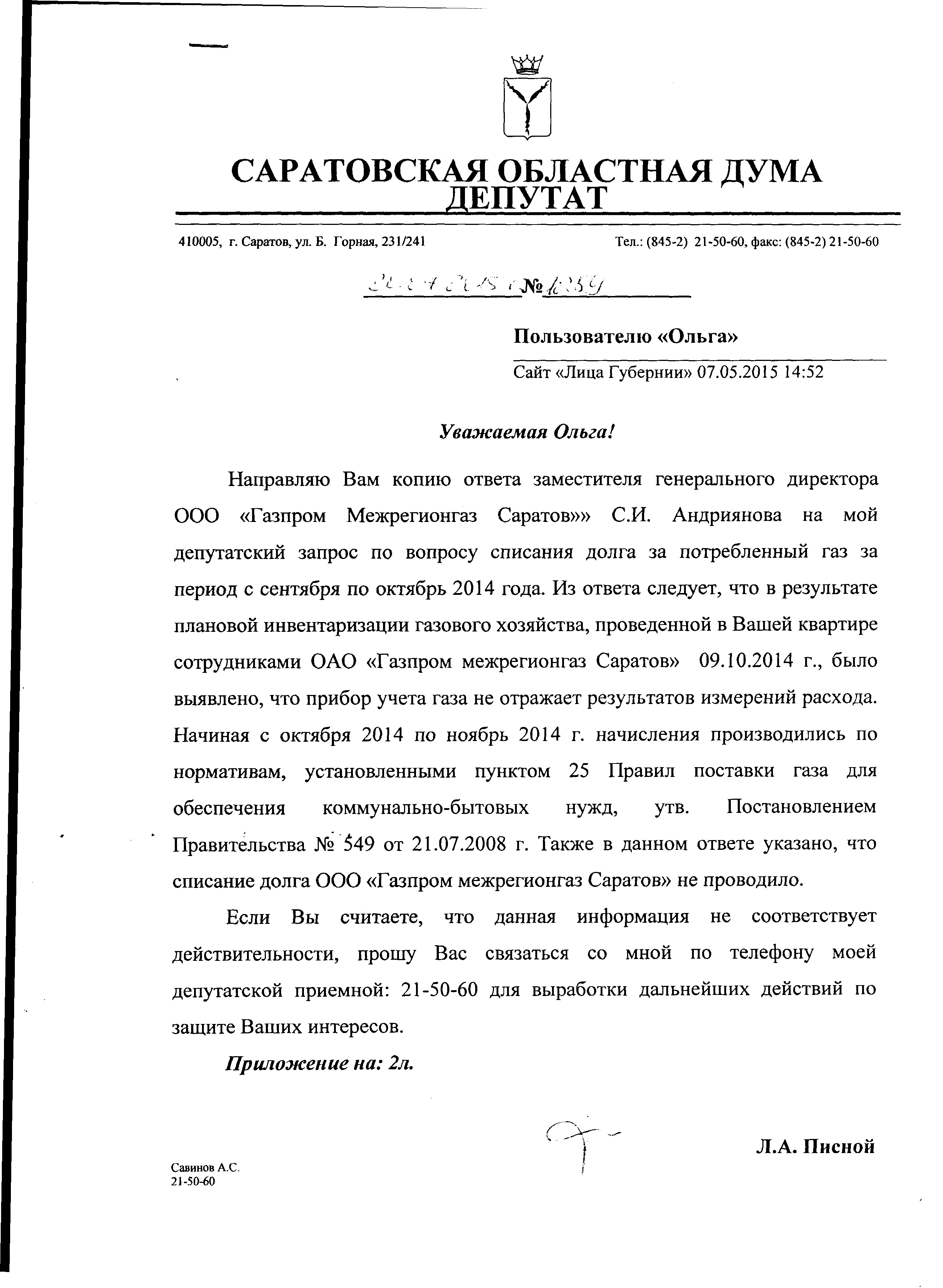 Уважаемая Ольга для выработки решения приглашаю Вас на депутатский прием, о дате и времени проведения которого Вам необходимо уточнить по тел.: 21-50-60