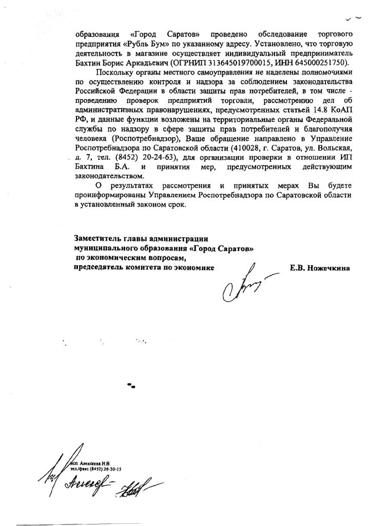Уважаемый Иван, честно Вам сказать — я не Владимир Ильич Ленин, который, говорят, знал всё, поэтому я Ваш вопрос перешлю в управление по контролю за торговлей города Саратова. Пусть они проверят, потому что дать здесь правовую оценку не могу.