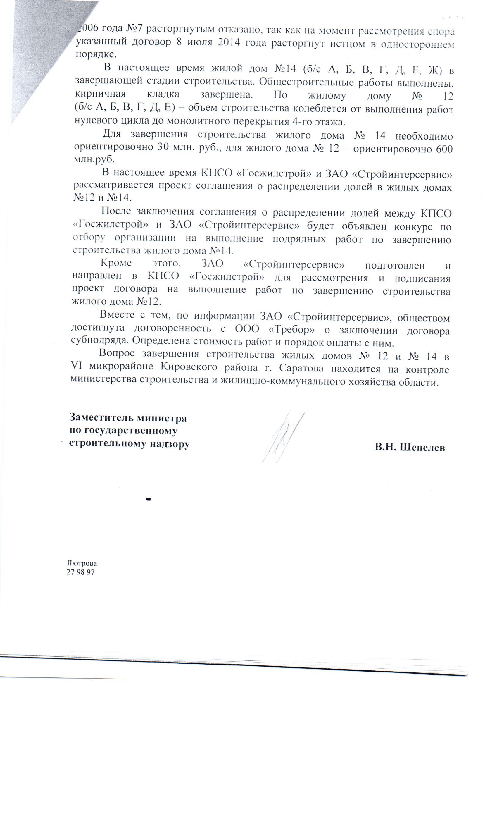Здравствуйте Леонид Александрович!Я прочла ниже все Ваши ответы по нашей проблеме и мы вам благодарны хотя бы за то что отвечаете,но к сожалению сдвигов никаких!Может быть нам пригласить Вас на наше собрание чтобы Вы как депутат объяснили всем(надеемся будущим)жильцам что происходит и чем и когда это закончится?Почему куда мы только не обращаемся идут одни отписки?Или может нам устроить какой нибудь митинг с привлечением средств массовой информации?Мы уже не знаем что нам нужно сделать чтобы мы вселились в свои долгожданные квартиры,ведь многие брали кредиты чтобы купить свою квартиру,которую обещали сдать через год,а уже прошло 5 и приходится жить с детьми на съёмных квартирах и ещё платить кредит за ту в которой не живём.Услышьте наш крик о помощи!!!!!!!!