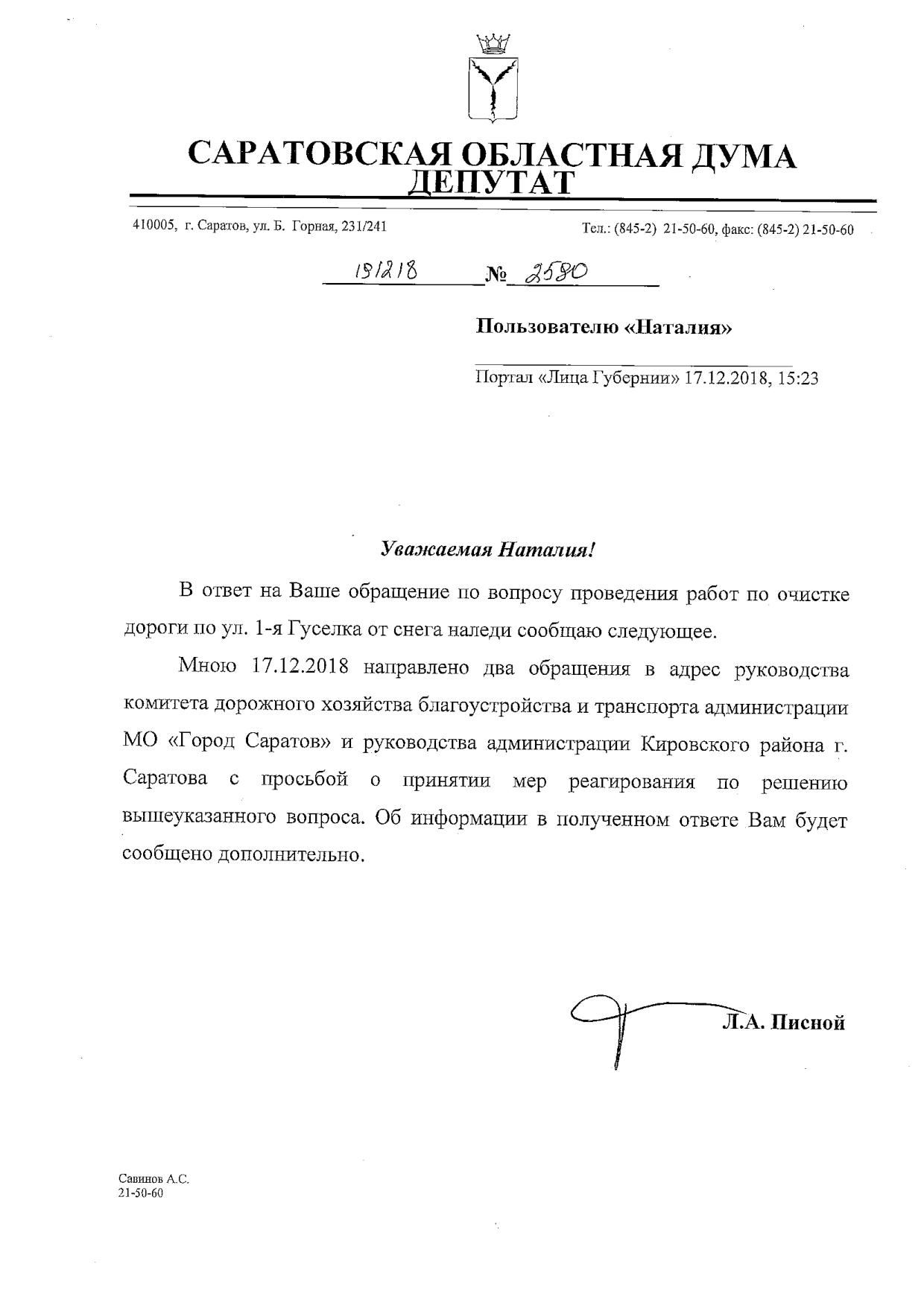 Уважаемый Леонид Александрович! Окажите содействие в расчистке улицы 1-ая Гуселка от снега и наледи. Заранее спасибо.