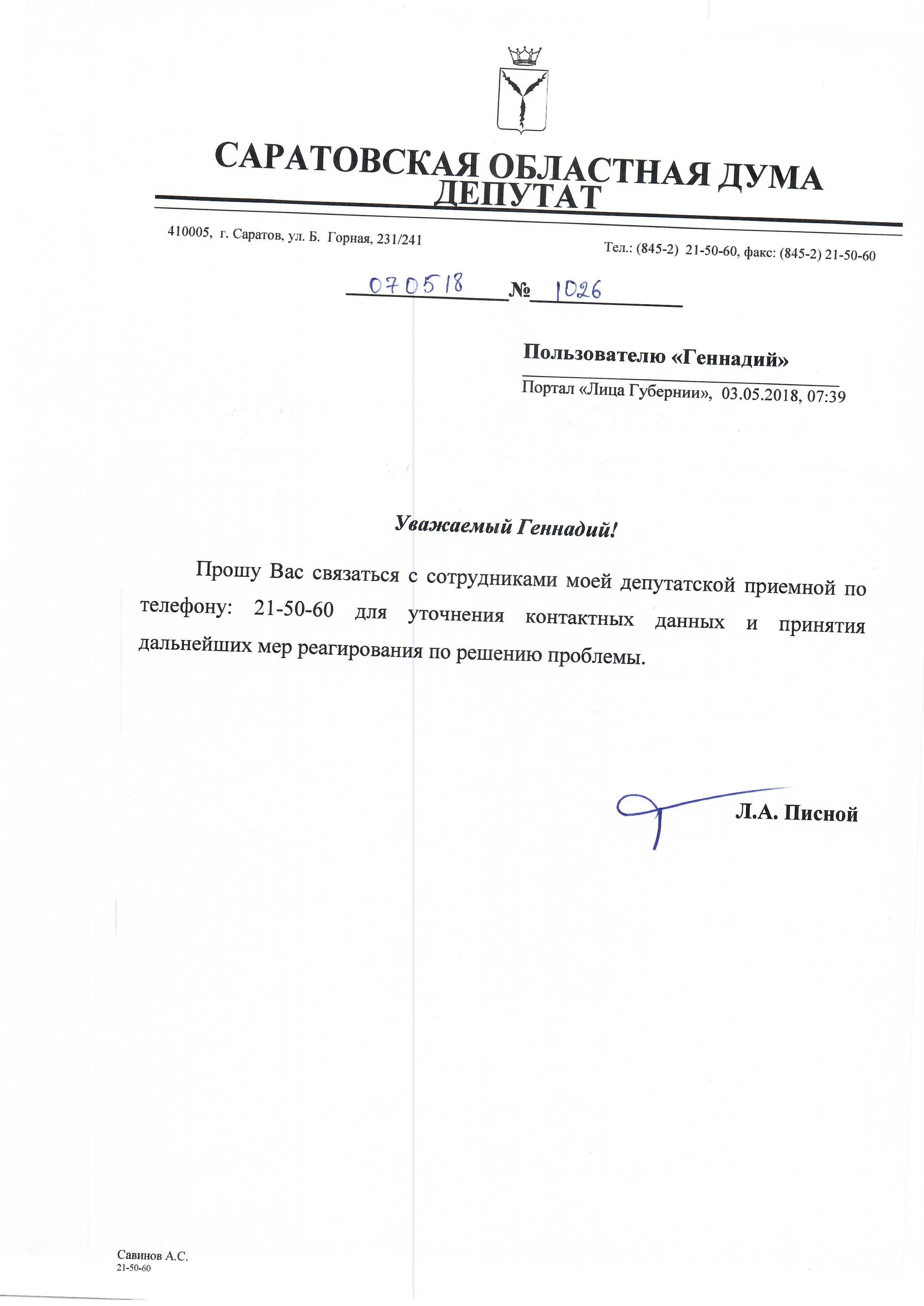 Уважаемая Светлана, я в теме этого вопроса. Жители подходили, когда открывали филиал поликлиники, 4 мая. Потом вроде как управляющая компания сказала, что нормализация произошла. Раз вы обращаетесь повторно — значит, не до конца. Будем просить у «Саратовводоканала», чтобы они разобрались, потому что, как говорит управляющая компания, перебои с давлением, точнее, с его падением, имеют место по всему микрорайону и связаны с подачей воды от сети «Саратовводоканала».