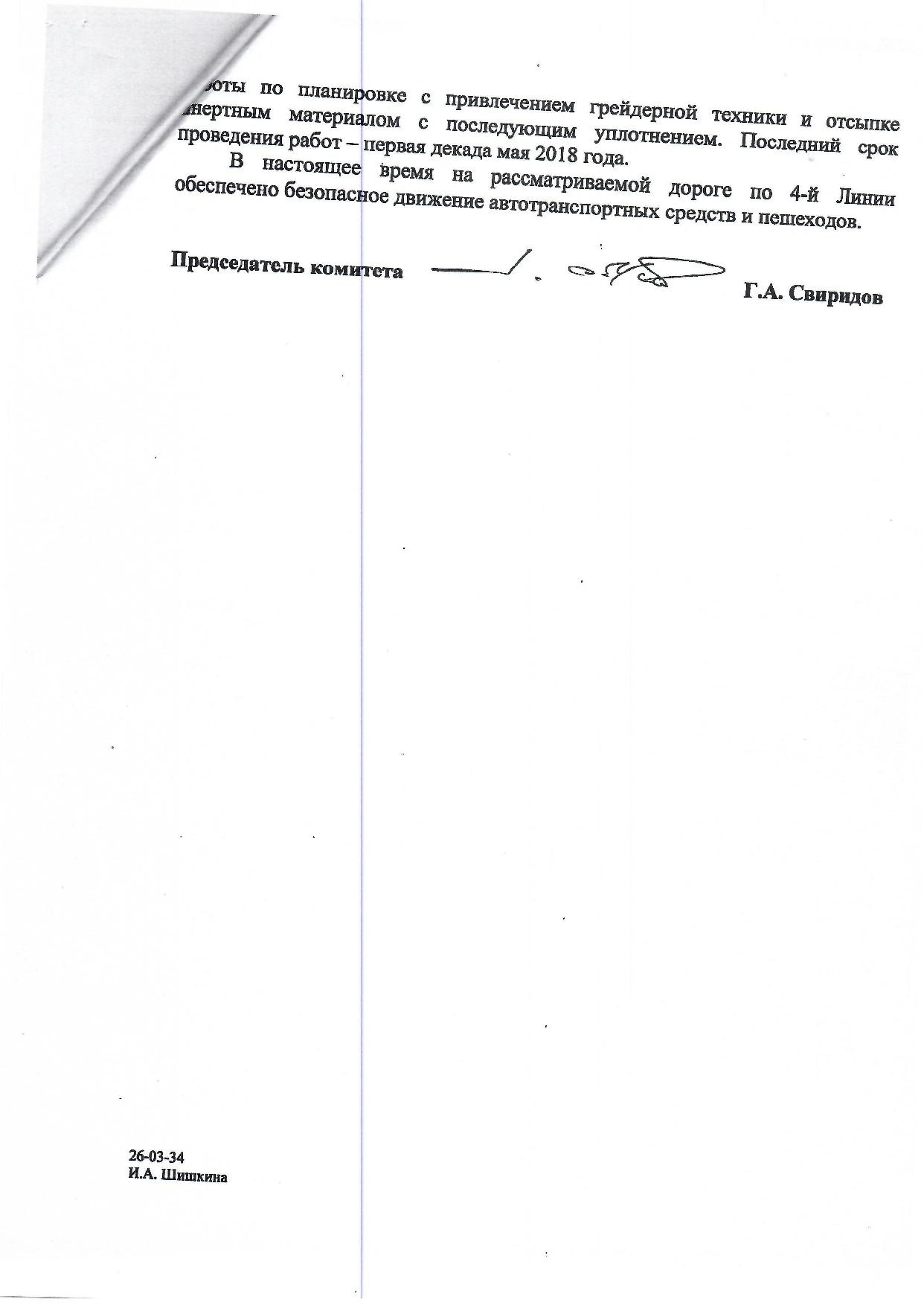 Здравствуйте. Согласен с предыдущим сообщением, дороги к домам на 4-ой и 5-ой Линиях ужасные и с каждым годом становятся всё хуже. Я не знаю, кто и что обещал с дорогой, но делать видимо никто ничего не собирается. На 1-ой Поперечной, 35 в доме которому всего год, уже разваливается крыльцо во втором подъезде, плитка, изначально не предназначенная для наружней отделки вся разваливается, с лифтами проблемы, везде грязь и бардак. И с адресом не смотря на Ваши обещания разобраться, до сих пор не понятно что.