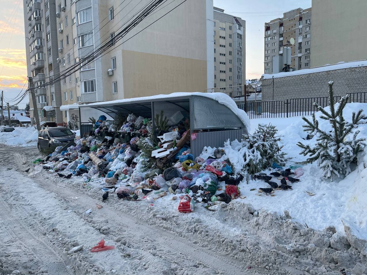 Кроме того мусор не вывозится. Баки уже переполнены. Мусор падает на дорогу.