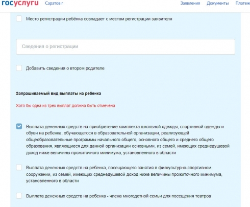Прием и регистрация заявления и документов на выплату денежных средств на детей из многодетных семей, посещающих занятия в физкультурно-спортивных сооружениях (gosuslugi.ru)