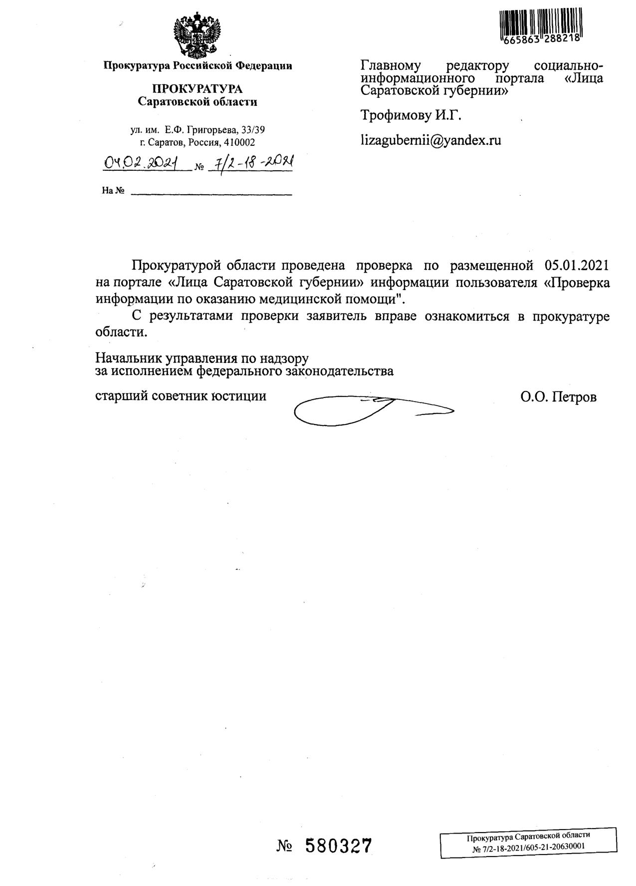 Прошу проверить информацию из Саратовонлайн по оказанию медпомощи, так как имиджу медицинских учреждений может быть нанесён вред подобными постами в Саратовонлайн, если факты не найдут подтверждения.