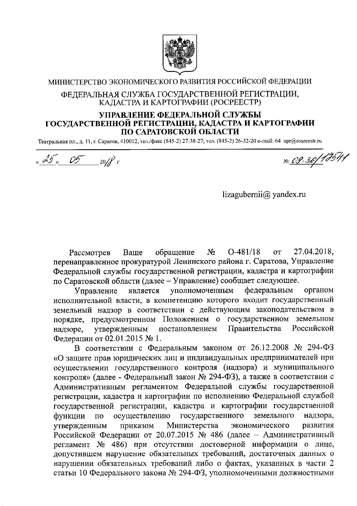 Прокурору Саратовской области
