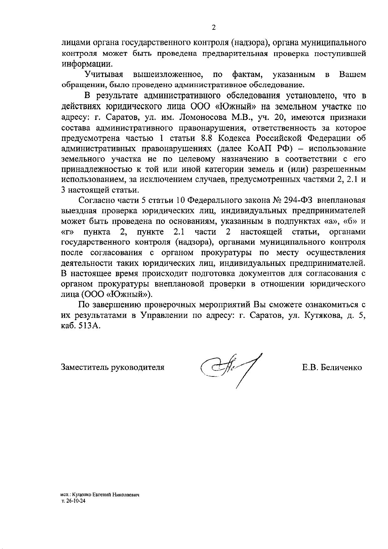 В соответствии с Приказом МВД РФ от 29.08.2014 №736 г. Москва « Об утверждении инструкции о порядке приема, регистрации и разрешения в территориальных органах МВД РФ заявлений и сообщений о преступлениях, об административных правонарушениях, о происшествиях» начальник полиции УМВД России по г. Саратову полковник Чепурной А.В.; начальника ОП №2 в составе УМВД России по г. Саратову полковник полиции Ю.П. Стриганков; и.о. начальника ГУ МВД РФ по Саратовской области полковник полиции Полтанов С.А., начальник УМВД по г. Сочи полковник Полуяров С.В. , полковник Залуцкий П.А. ГУ МВД по Краснодарскому краю, несут личную ответственность за организацию и проведение таких проверок.