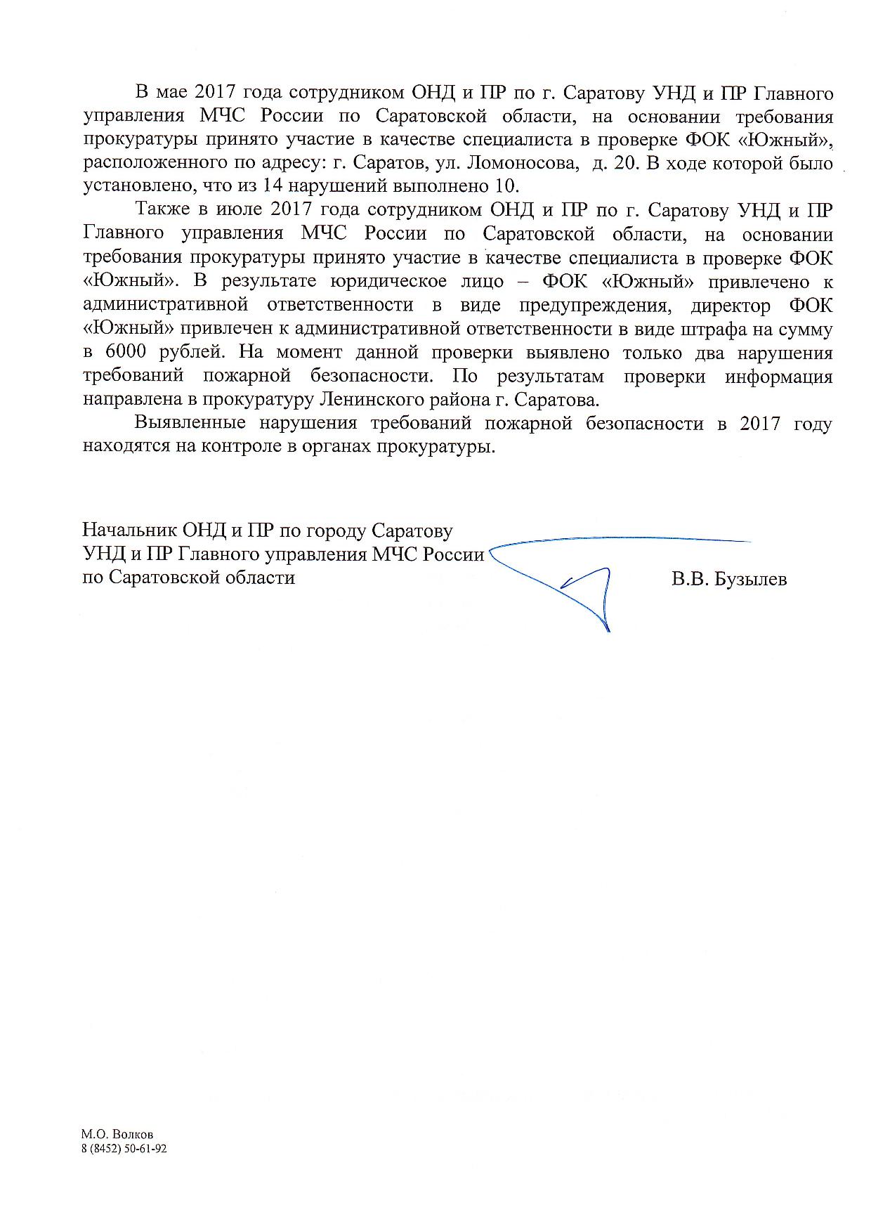 Уважаемый Сергей Владимирович! Мы, жители микрорайона "Техстекло" г.Саратова, обращаемся к Вам по факту нарушения законодательства при эксплуатации ООО"Южный" ФОК"Южный".
