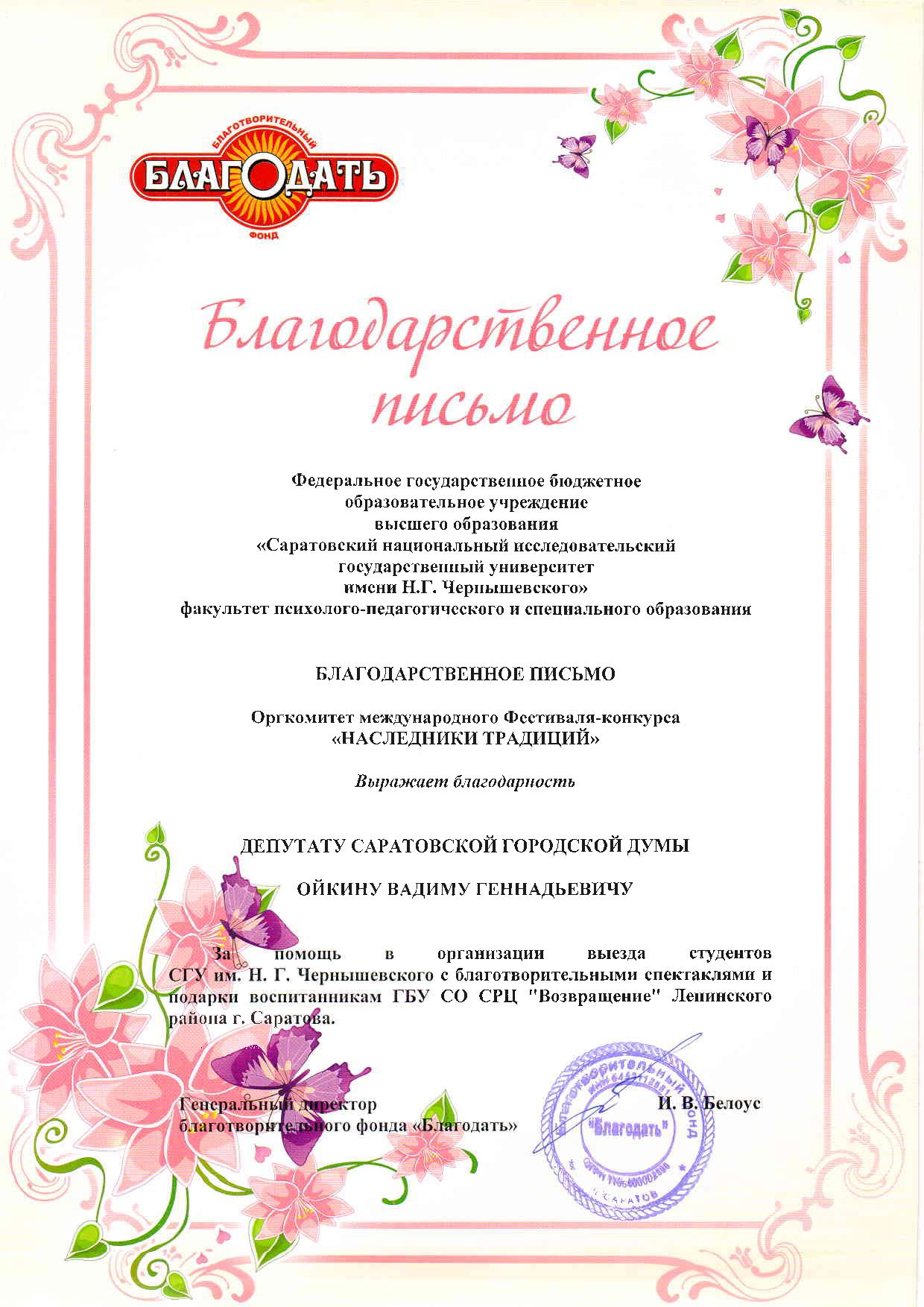 Примите искреннюю признательность за неравнодушное отношение к проблемам
