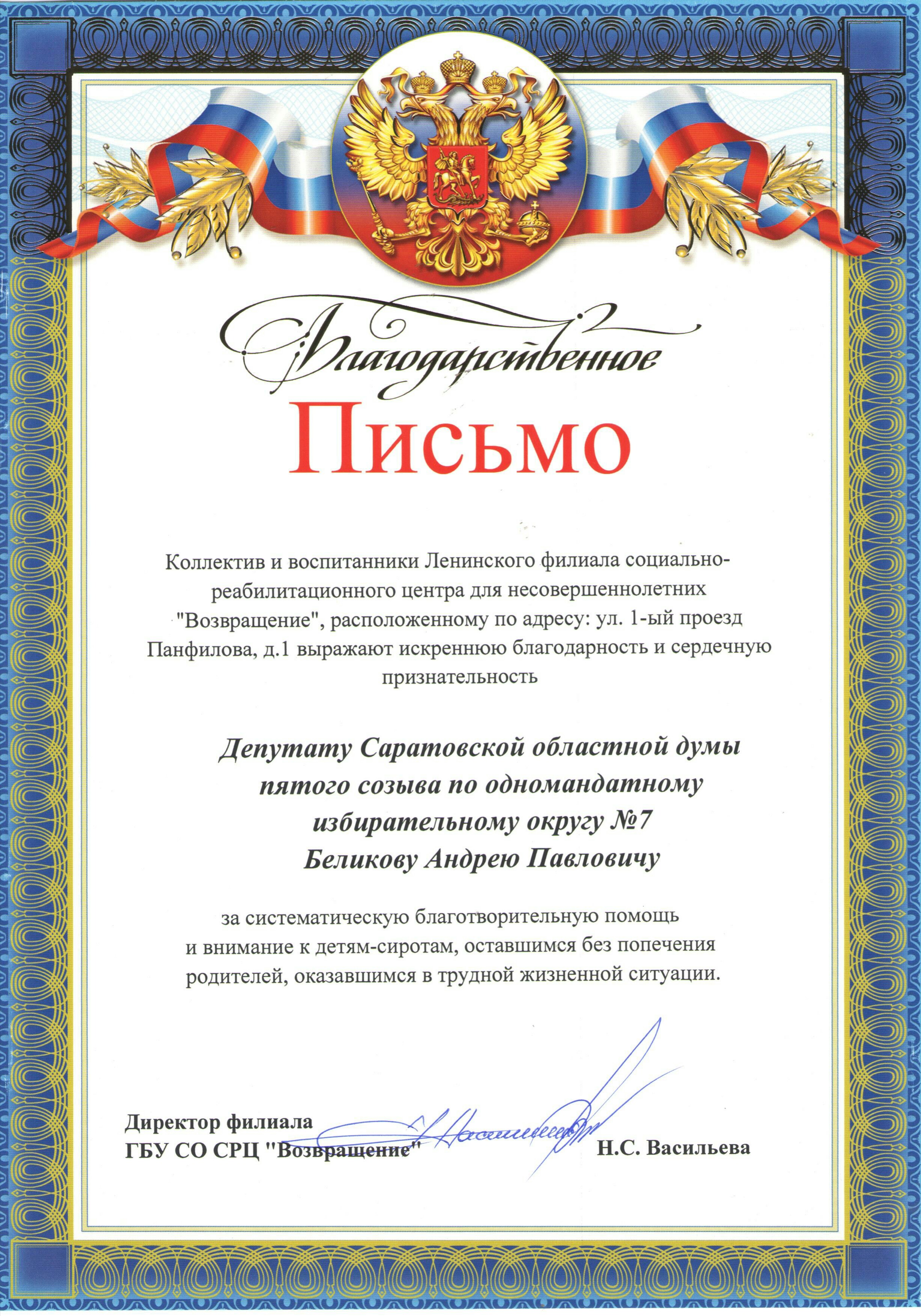Уважаемый Сергей Александрович! Благодарю Вас за быстрое реагирование на проблему обеспечения моей дочери ребенка-инвалида Новогодним подарком и своевременное решение этого вопроса. Вы настоящий Дед Мороз!!! Спасибо Вам за радость ребенка и праздничное новогоднее настроение нашей семьи. Поздравляем Вас и ваших родных и близких с наступающим Новым 2018 годом!!!