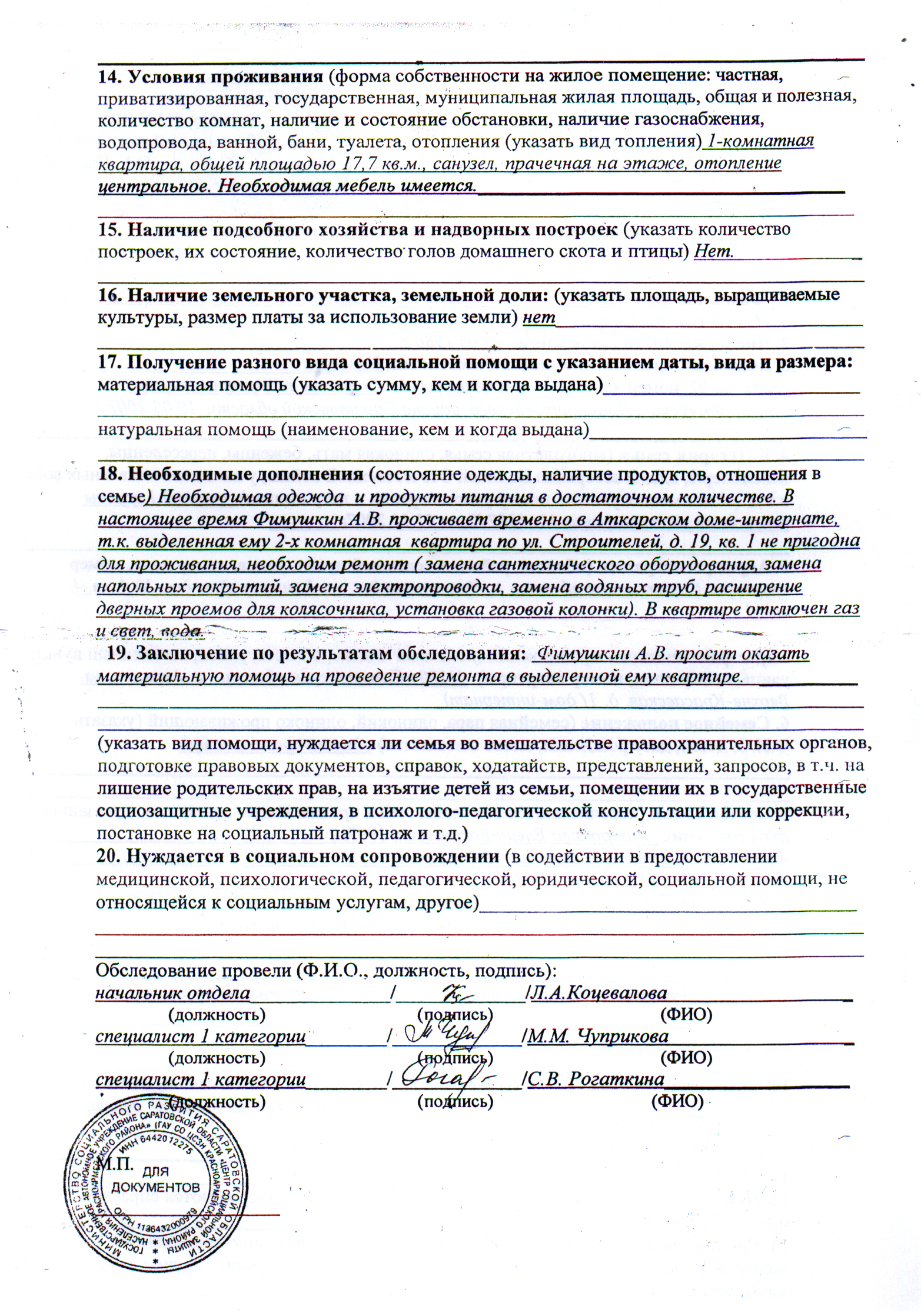 Инвалиду первой группы Фимушкину Алексею Васильевичу, в Саратовской области города Красноармейска по улице Строителя, 19, кв. 1 администрацией города было выделено жилое помещение в непригодном состоянии для проживания! К этому описанию прилагаю видео этой квартиры.