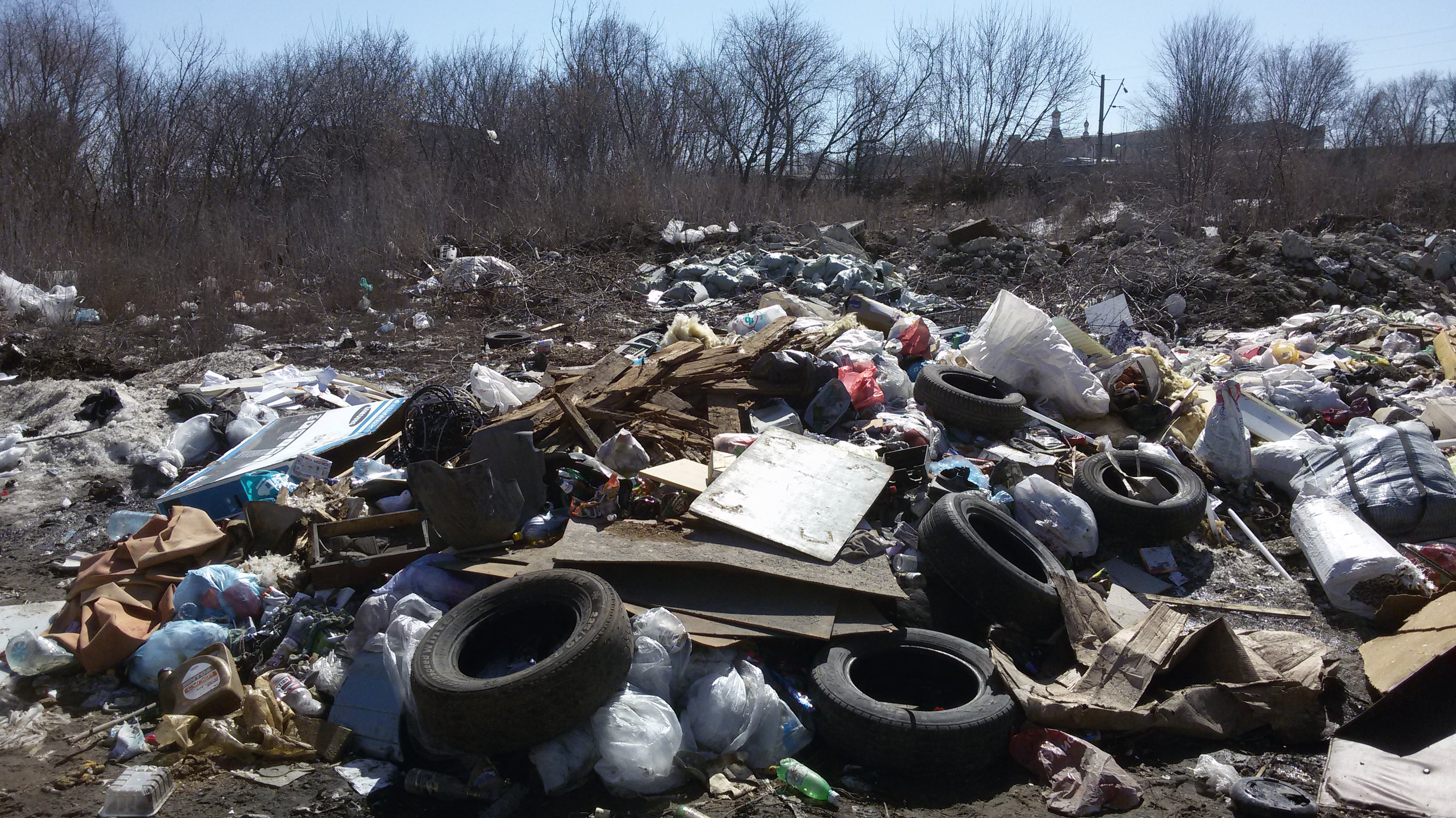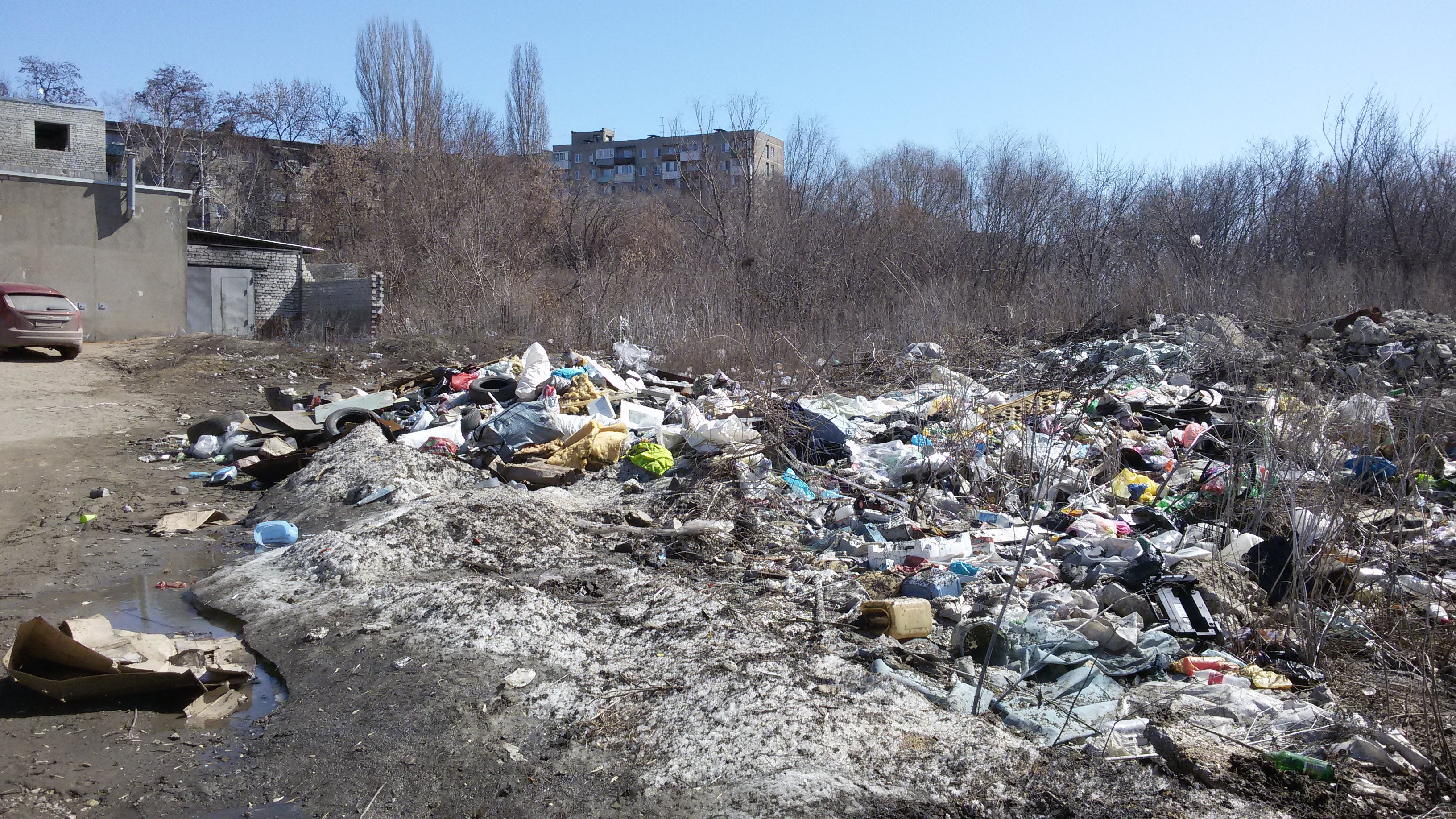 Растаял снег наружу вылезла огромная свалка в Заводском районе "Залетаевский овраг".