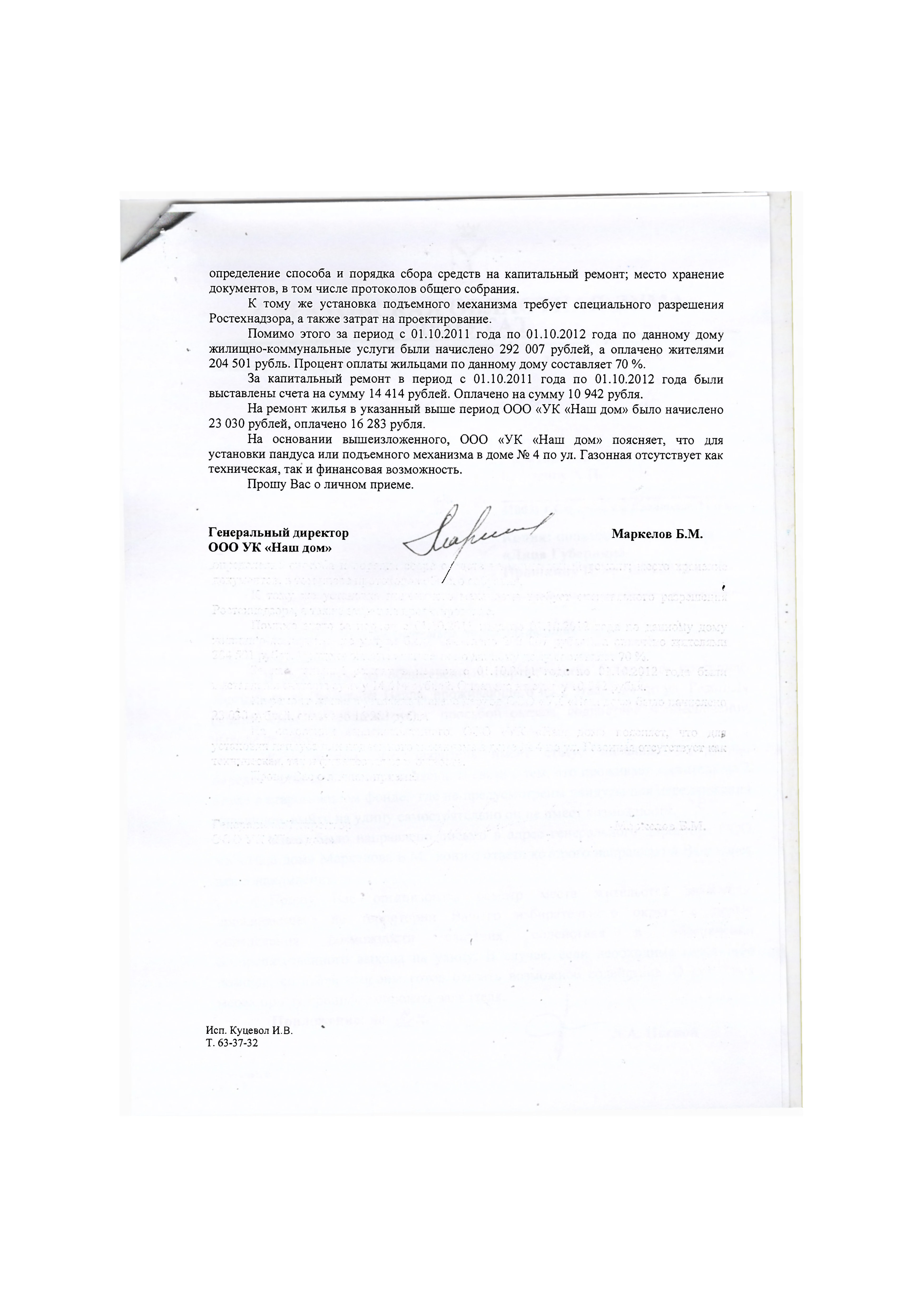 Уважаемый Павел. Для того чтобы я мог Вам помочь реально, мне надо знать адрес, по которому Вы живете. Управляющая компания ТСЖ «Наш дом», я понял. Теперь еще необходим адрес дома, и я думаю, что мы сможем оказать реальное содействие.