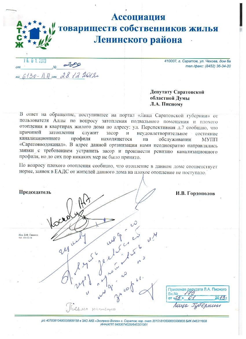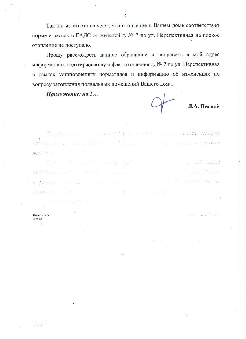 Уважаемый Леонид Александрович! Жители дома №7 по улице Перспективной просят Вас о помощи. Нашему дому более 40 лет, ни одного капитального ремонта не было; в подвале с лета стоит вода и в подъездах ужасно пахнет канализацией; теперь еще добавилась проблема с отоплением: батареи в квартирах чуть теплые (со страхом ждем морозов). Много раз обращались в АТСЖ Ленинского района с заявлениями об устранении неполадок, но безрезультатно.