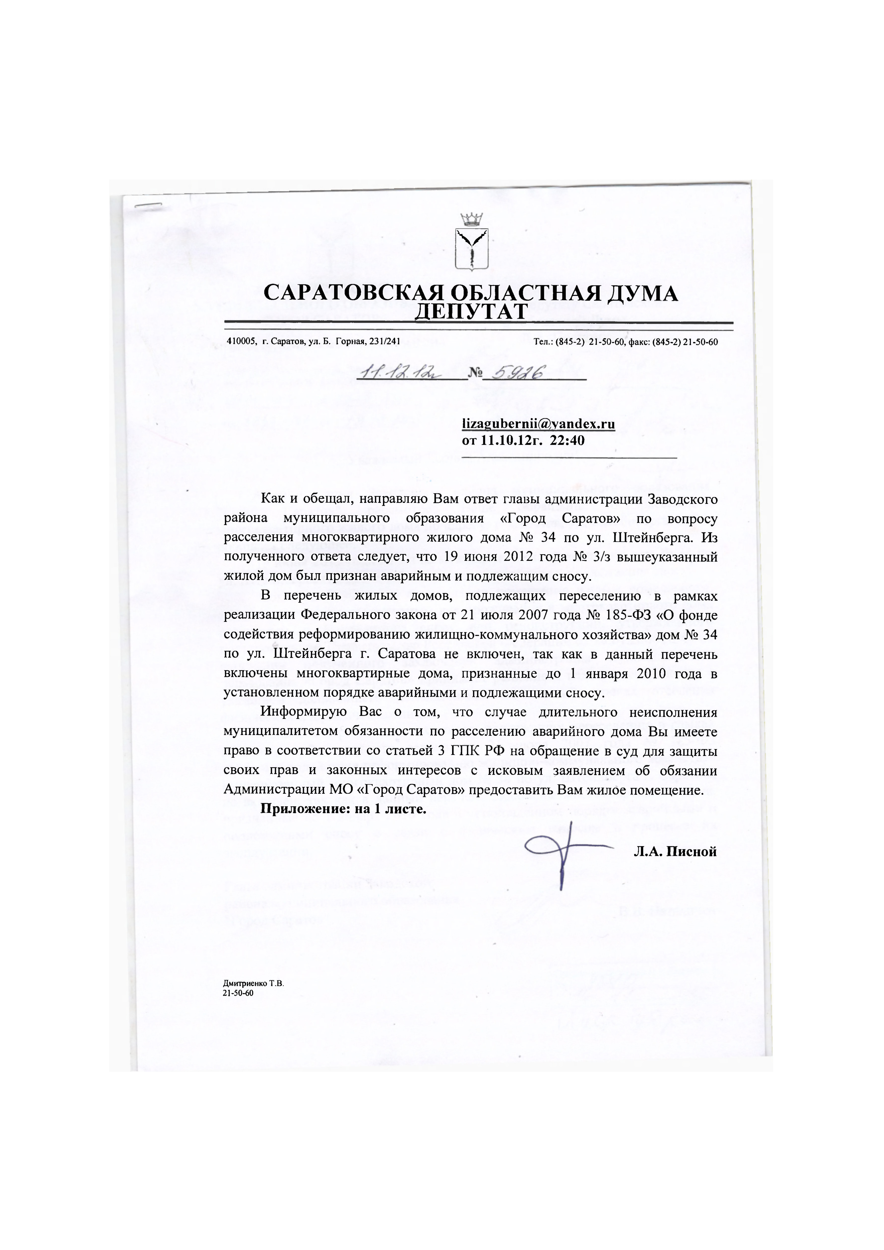 Леонид Александровичь снова беспакою вас по повод дома 34 на улице Штейнберга! Вам Заводская Администрация так и не передала документы?