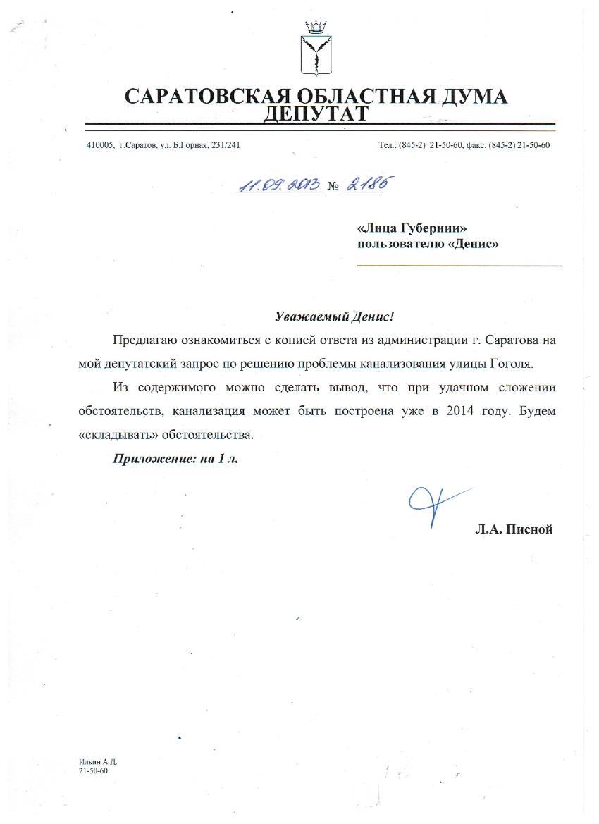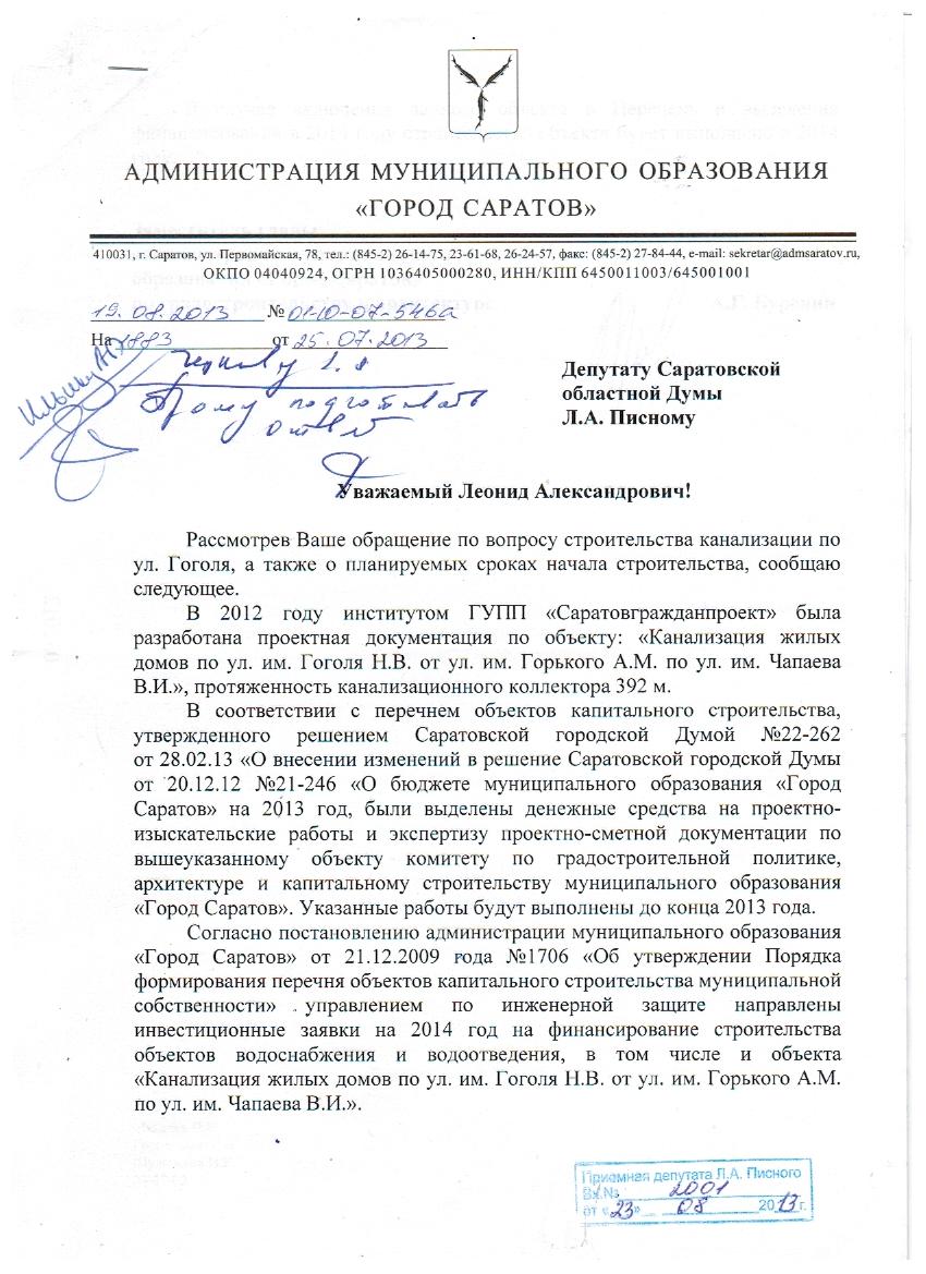 Добрый день Леонид Александрович!Мой вопрос связан со строительством канализации по ул.Гоголя.Есть ли информация по строительству данного сооружения?В каком году запланировано начало строительства?