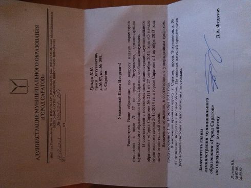 Уважаемый, Андрей Павлович прошу вас принять меры в отношении вышеуказанной управляющей компании. С 1.10.2013 года по 15.11.2013 года в доме пр.Энтузиастов 57 в 8м подъезде отсутствовало отопление, потом его включили но оно не соответствует нормам (составлен акт о температуре в помещении 16 градусов). Управляющая компания принимать меры отказывается и не делает перерасчет, хамят по телефону и не берут трубку. Заблокировали телефоны некоторых жильцов подъезда. В муниципальные органы компания отчиталась об успешном подаче отопления. Жилец квартиры 399 Павел Гильгун.
