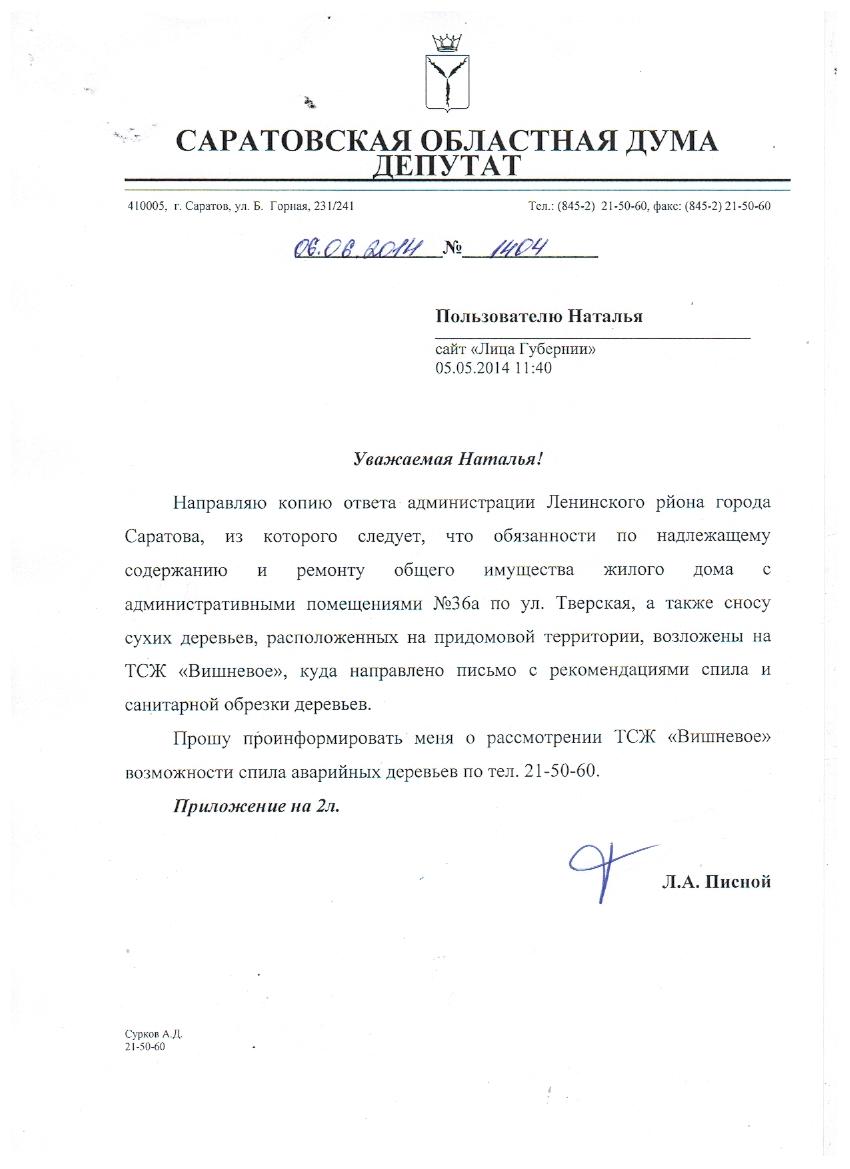 Уважаемая Наталья, ну, я много раз говорил, что нельзя объять необъятное. Тверская, 36«б» не имеет отношения к восьмому избирательному округу. Поэтому, я, конечно, направлю письмо в администрацию, попрошу вашего депутата, чтобы он обратил на этот вопрос внимание, а также обращусь в местное отделение «Единой России».