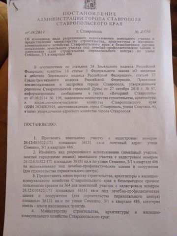 Уважаемая Валентина Матвиенко! В Ставрополе задними числами переводят городские леса под строительство - Таманский лес из категории Р-1, под строительство перинатального центра, ссылаясь на федеральную программу и на указ Москвы привязки к действующему мед. центру ! Краевой бюджет пилят под разные программы - нашли кормушку для всех, а сейчас аппетит еще больше на 2.4 млрд. Федеральных средств. Коррупция краевых властей, суда, прокуратуры и всех правоохранительных органов поглотила Край и город. Просим о срочной помощи! Подробно можно почитать в группе Фейсбука "Спасем таманский лес " Видео, документы, Факты коррупции властей! Неоднократные многочисленные обращения жителей в прокуратуру и т.д. Владимирову В.В. безрезультатны! Тут сохранили видео(они чистят все, сми тоже под контролем не публикуют постановления и документы для ) https://yadi.sk/d/GWy_SitiZiKwu посмотри это и все станет ясно! Буду дублировать это письмо пока не получу ответ, что оно дошло и вы прочитали его! Нельзя верить ни кому. С уважением Юлия.