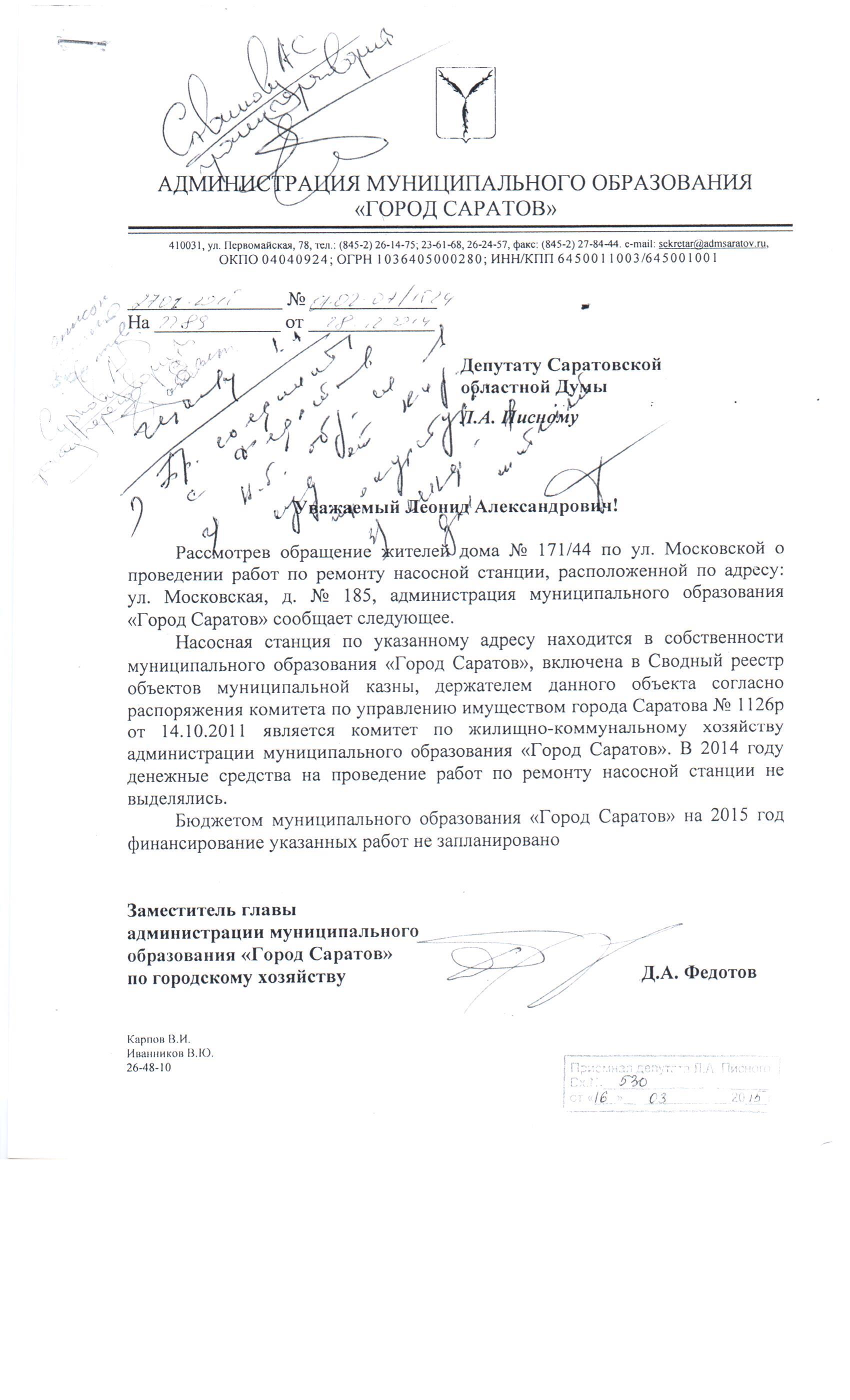 Здравствуйте. Просим Вас помочь нам с решением проблемы водоснабжения. Раньше наш дом( Московская 171/44г) и соседний Московская 169 (двор единый),относились к одной УК, разделили нас , наша УК Фаворит.Более 30 лет назад была проведена перекладка водяных труб(ввод с основной трубы сделали напрямую в дом 169, в котельной поставили насос,так как к нам дотекали остатки воды.После раздела насос был снят. Очень просим Вас поднять типовой проект нашего дома(Московская 171/44г) и восстановить первоначальную прокладку водяных труб.В УК обращались, они говоря, что такого не может быть,обвиняют водоканал в слабом давлении.В нашем подвале вся реконструкция видна.У нас газовые колонки, которые при слабом напоре воды не работают.