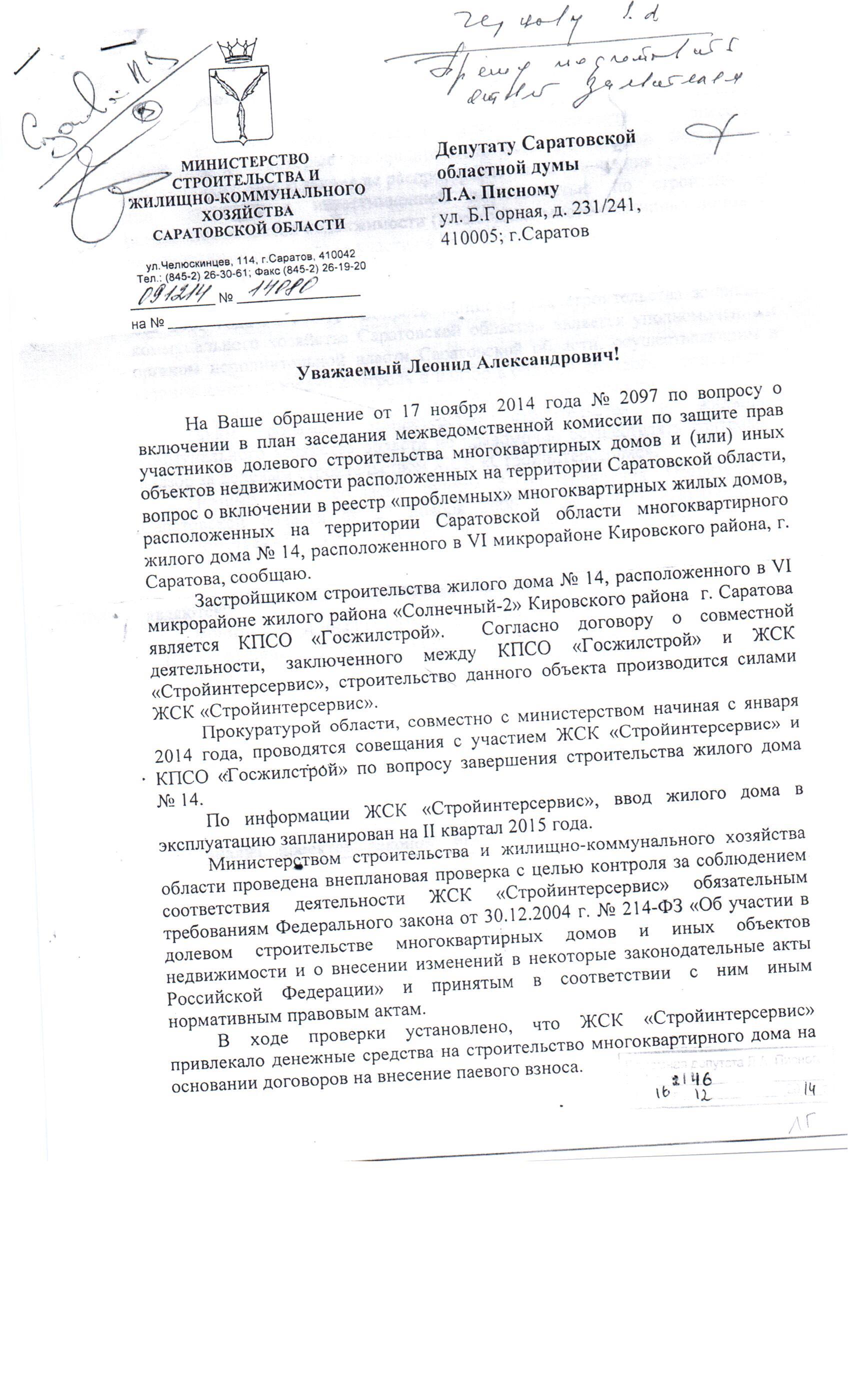 Уважаемый Леонид Александрович!Уже нет сил ждать когда сдадут наш дом!! Куда нам ещё обратиться уже не знаем?? Неужели нет никакой ответственности за этот долгострой!Здесь Вам уже писали о нашей проблеме год назад,писали письма и в мин.строительства,приглашали телевидение! Почему никто не реагирует на нашу проблему??6 микрорайон не достроен только из за этой компании а в нашем 14 имеется ещё и соц. жильё!Помогите нам пожалуйста!!!!!!!!
