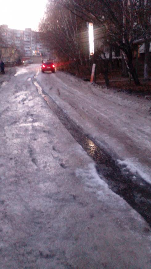 уже неделю течёт вода в районе 1-ой Дачной-это улицы:Аптечная,Техническая,Наумовская,ночью всё замерзает,и утром просто не пройти,и не проехать,и тут же течёт в этих калдобинах вода-примите меры пожалуйста