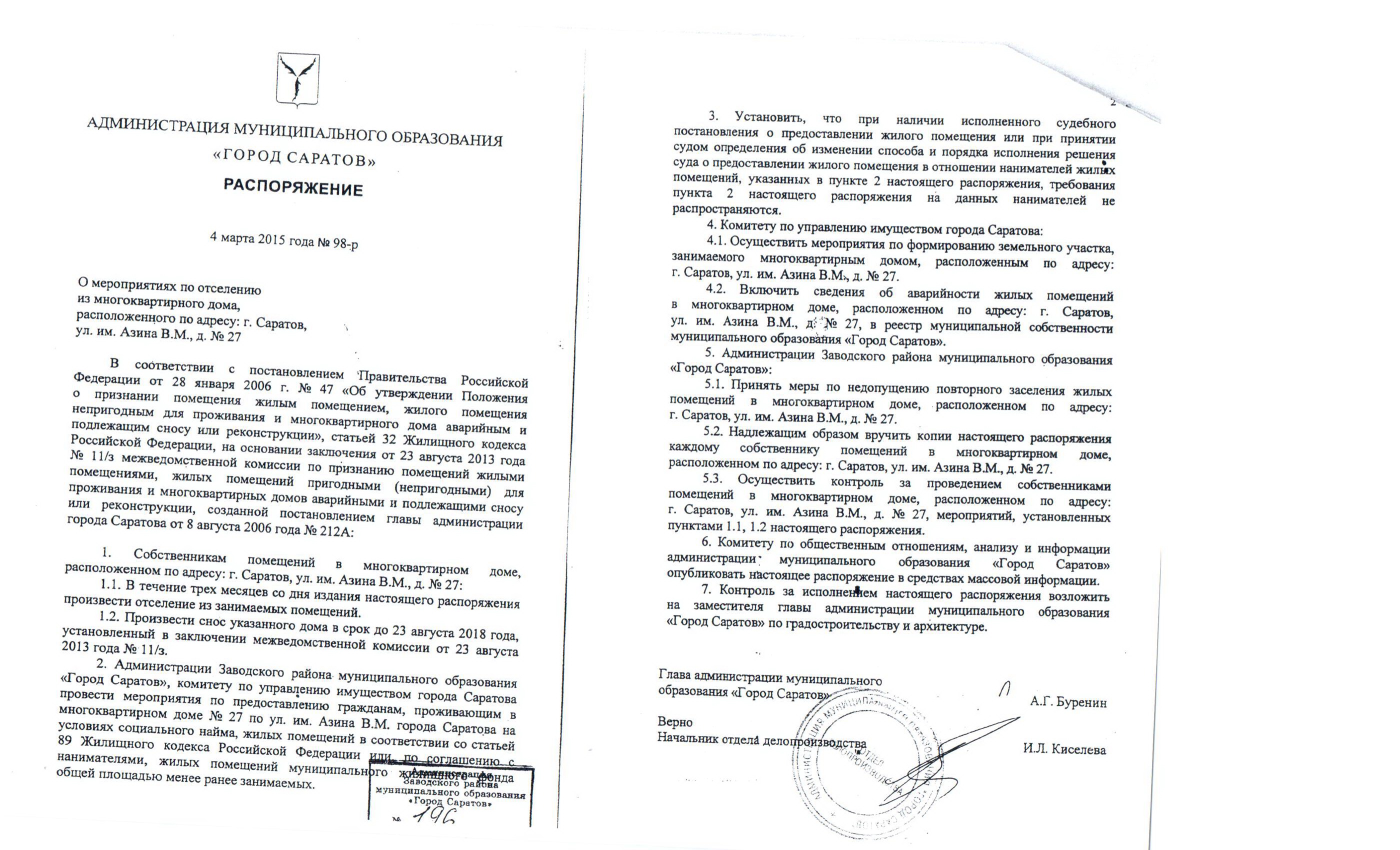 Уважаемая Елена, я запрошу администрацию, по-моему, было распоряжение по вашему дому, Азина, 27.