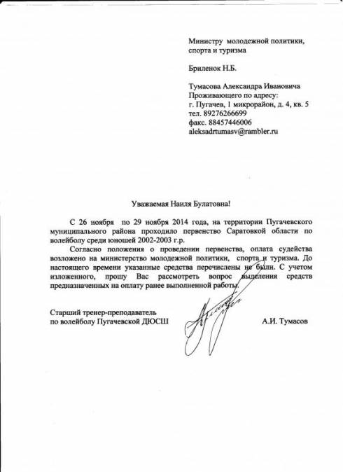 Уважаемый Александр, в ответ на Ваше обращение поступившее на портал «Лица Губернии», по вопросу погашения задолженности министерства молодежной политики, спорта и туризма области по оплате расходов судейства за проведение первенства Саратовской области по волейболу среди команд юношей 2002-2003 г.р. на территории Пугачевского муниципального района, сообщаю.